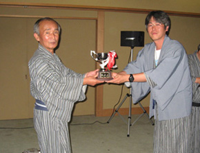 非常に難しいグリーンのコースで、それぞれがなかなかスコアが伸ばせない中、接戦ではありましたが、最近一番の成長株である植野英彦氏が優勝の栄誉に輝きました。 |